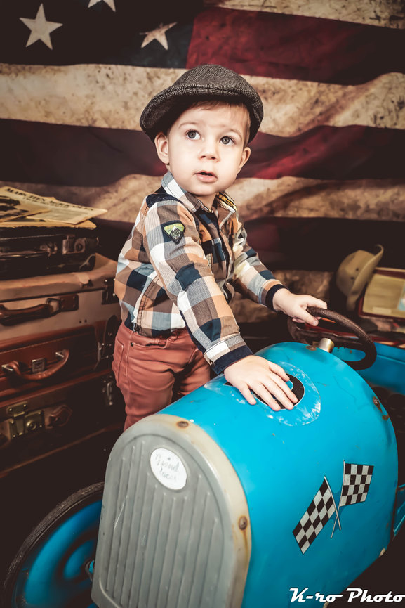 Séance portrait dans un univers rétro. Repartez avec 15 photos toutes retouchées et données en format numérique. Séance en studio 1h.
